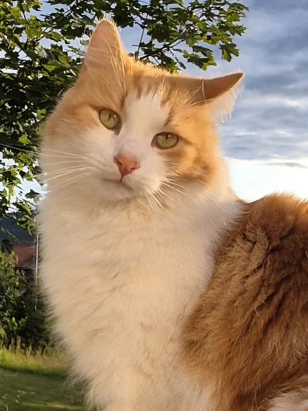 Utefødt I koloni. 1 av 20 kattunger Dyrebeskyttelsen fangetninn høsten 2020. Kom til meg 7 mnd gammel og livredd ALT. Bodde 3 mnd under sofan. Er nå verdens fineste fyr trygg og god. Men usikker på nye mennesker. Ikke langt unna hjemmet. Elsker å børstes etter kl 21.15 vært kveld. Et evig mas. Jeg blir hentet...