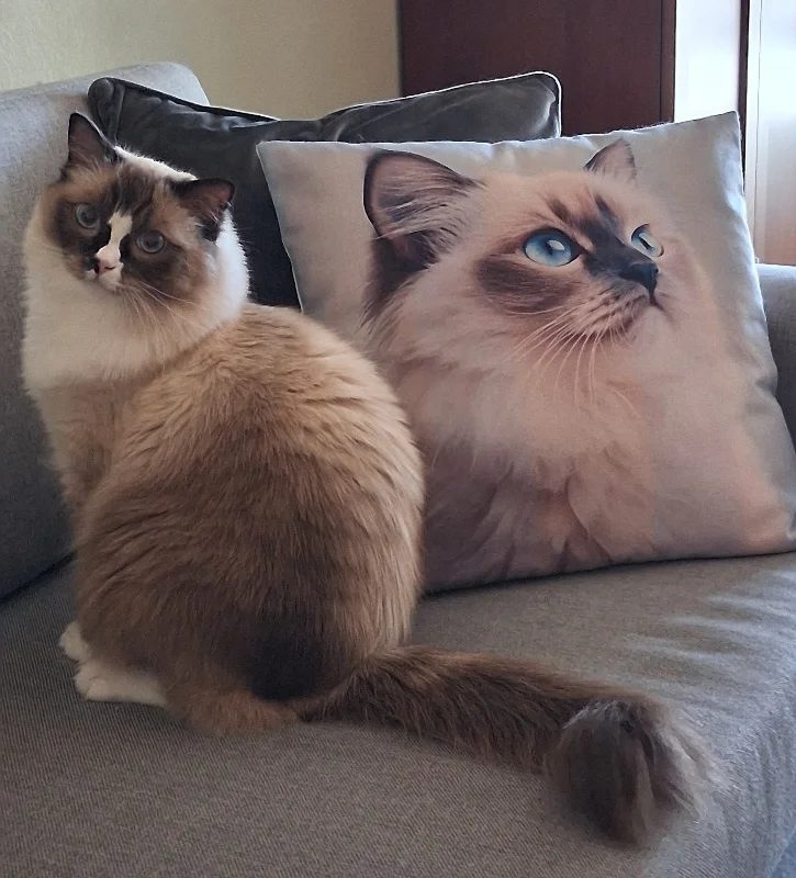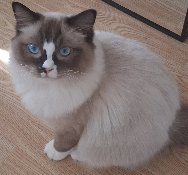 Lui er av rasen Ragdoll. Han er innekatt og er en veldig ønsket katt som betyr mye for meg i verdagen. Født på min og min avdøde manns bryllupsdag.