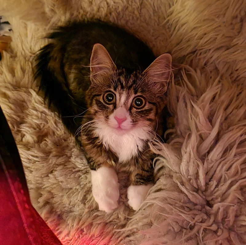 Dette lille beistet ble med hjem gratis fra Magnor på Eidskogen den 8 September, super sosial jente som elsker alt og alle, hadde 2 hunde søstre, desverre gikk en av de bort nyligen men har en igjen som hun er veldig glad i.