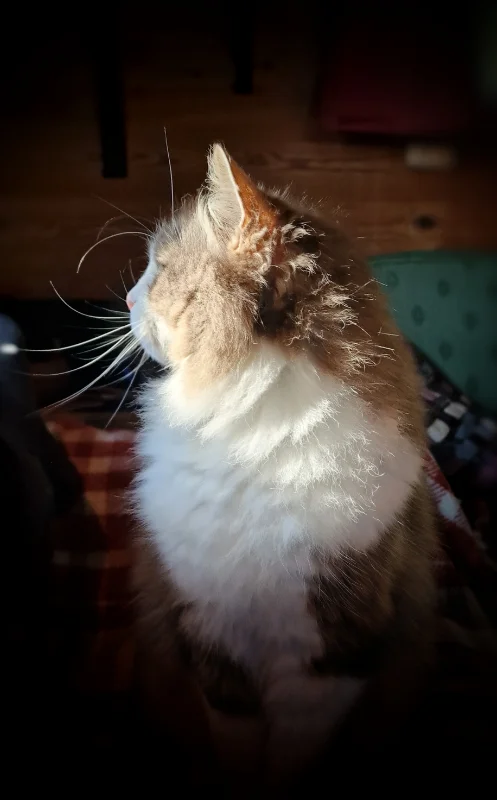 Musa kom i hus og fikk navnet Rasmus. Det viste seg ganske raskt at det var ei pusefrøken vi hadde fått i hus, og da blei navnet korta inn til Musa. Musa er en tøffing, og noe av det første hun gjorde var å lappe til hunden vår på snuta. Han sa umiddelbart Ja sjef! Og sånn blei det. Musa er tøff, en fantastisk jeger, kosejente for de veldig få, hun er nydelig, søt, sær, arrogant, vakker og vetdens beste pusejente!