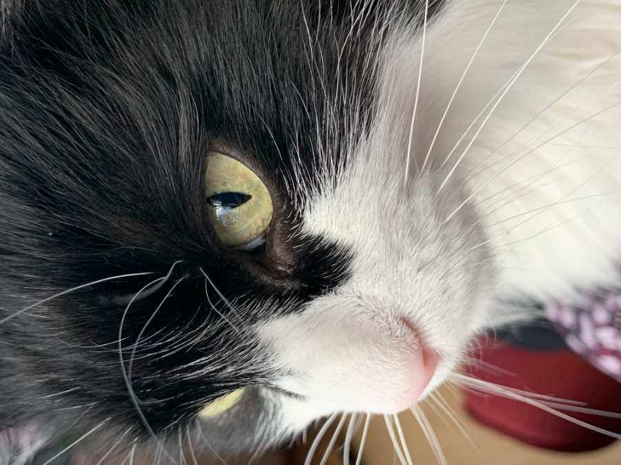 Når vi andre som bor i huset er borte noen dager har han ei reservemor som flytter inn i huset og gir han mat, kos og omsorg.