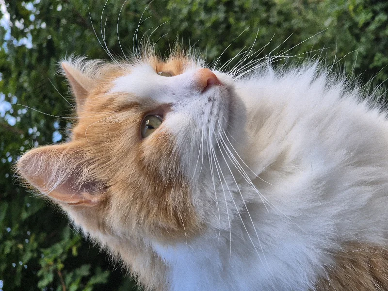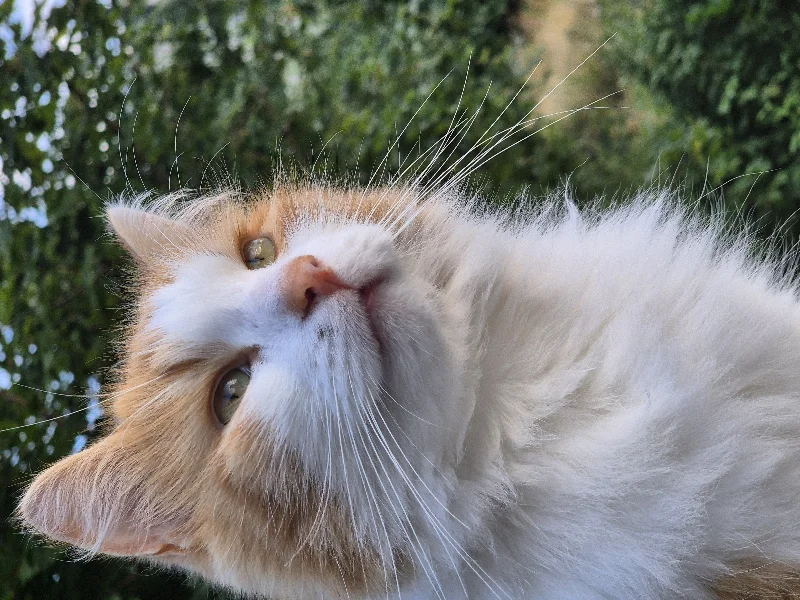 Utefødt I koloni. 1 av 20 kattunger Dyrebeskyttelsen fangetninn høsten 2020. Kom til meg 7 mnd gammel og livredd ALT. Bodde 3 mnd under sofan. Er nå verdens fineste fyr trygg og god. Men usikker på nye mennesker. Ikke langt unna hjemmet. Elsker å børstes etter kl 21.15 vært kveld. Et evig mas. Jeg blir hentet...