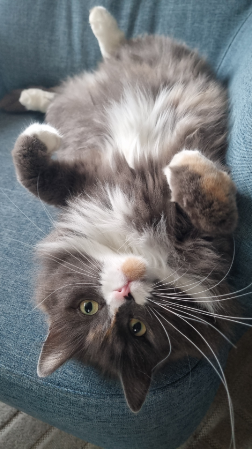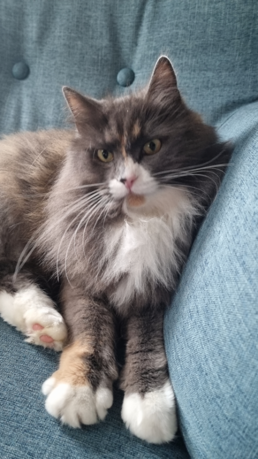 Nydelig pels, glad i kos på egne premisser. Liker seg ute om sommeren.
