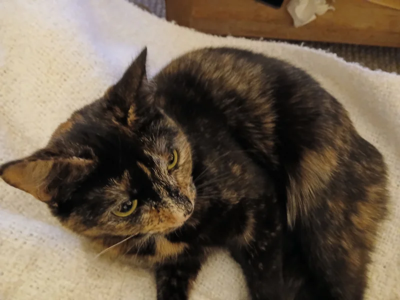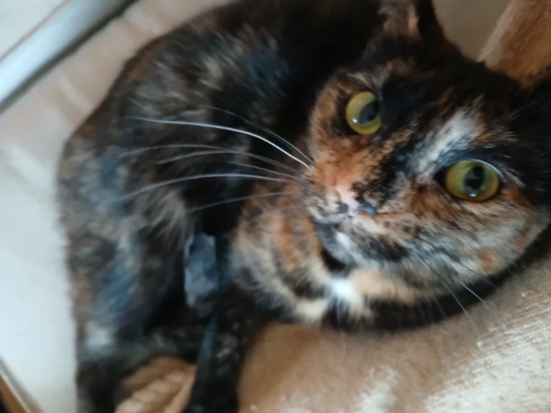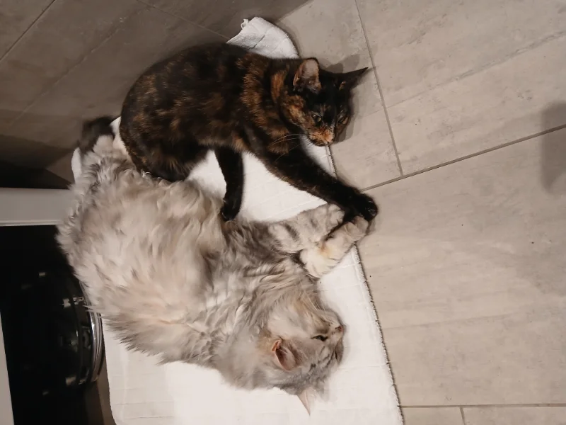 Felicia er en leken liten frøken som elsker å leke. Hun er lillesøster til Julius som hun liker å sove ved siden av og å erteleke litt. Hun kommer gjerne på fanget for og sove også. Hver kveld er det rutine å ligge i armkroken og få kos på magen. Hun er ikke glad i å gå ut, men bivåner gjerne broren sin fra 1.etasje når han er på tur for å spise gress. Turen er alltid under overvåking og matfar er også med.