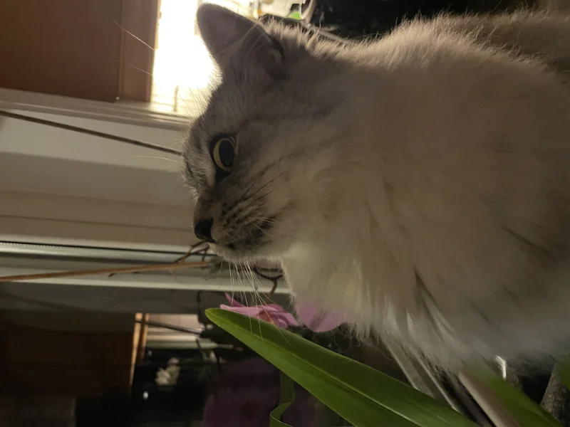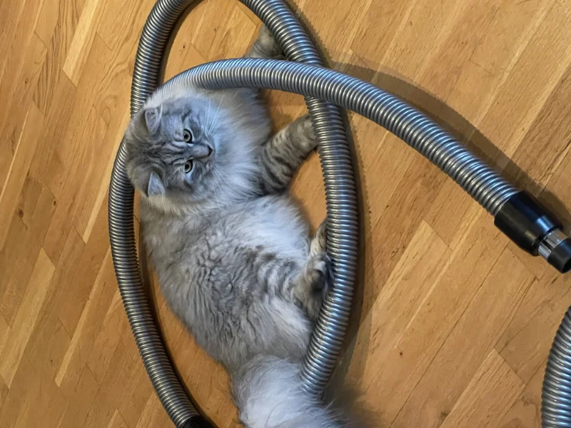 Dexter er en herlig blanding av chincillaperser og britisk langhår. Han er innekatter og trives godt med det:) Elsker å leke apport med små, myke baller og å leke med vår papillonhund. Er også en ivrig fuglekikkere så vi har satt opp matingsstasjon rett på utsiden av kjøkkenvinduene. Han er er stor, nysjerrig og silkemyk pus som er med på det meste som skjer i huset. I sommerhalvåret trives han godt i luftegården der han følger med på fugler og insekter.