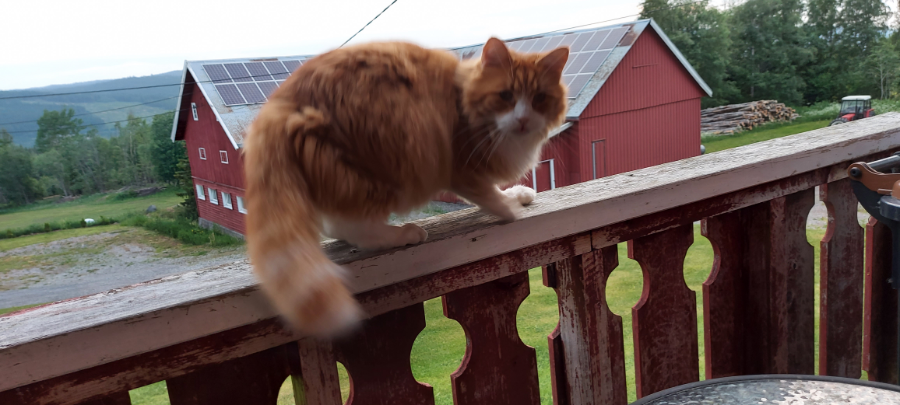 Glad og fornøyd pusekatt som er glad i uteliv!