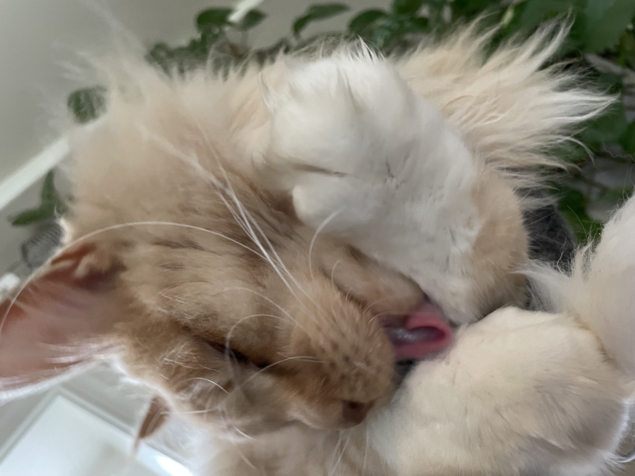 Theodor er en sosial type som vil være med på det som skjer. Elsker å ligge sammen med oss.