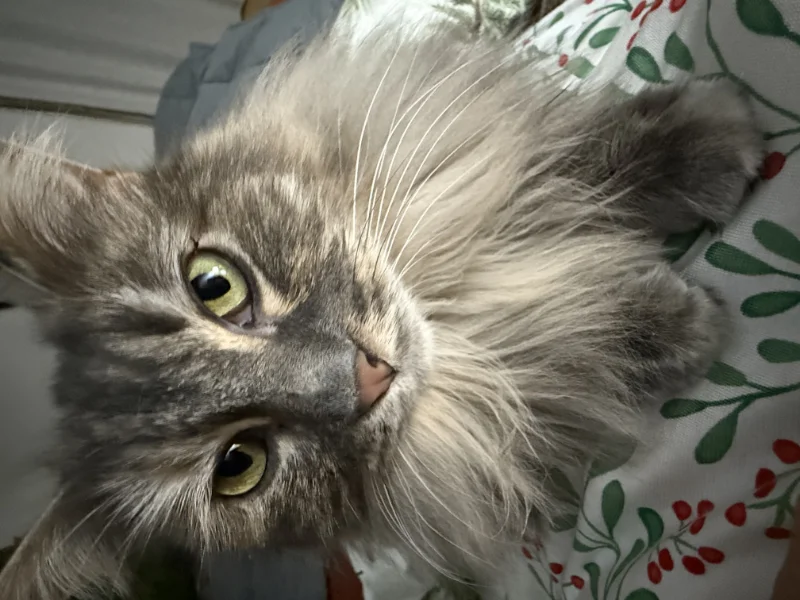 Flora came to our house as a one-pound very sick 8 week old kitten, with giardia and a bad uri. Mama nursed her back to health through a whole summer, with the help of MJ, who treated her like she was her own kitten, and now she’s 9.5 pounds of fluffy feisty goodness, a real character and a sweet beautiful girl with her own robust Facebook following.