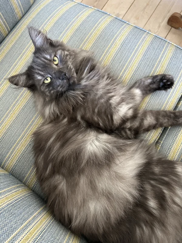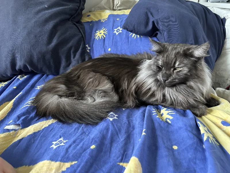 Alex er en skikkelig hengiven og kosete pus. Litt diskré og forsiktig med mennesker. Han åpner seg opp når han blir kjent.