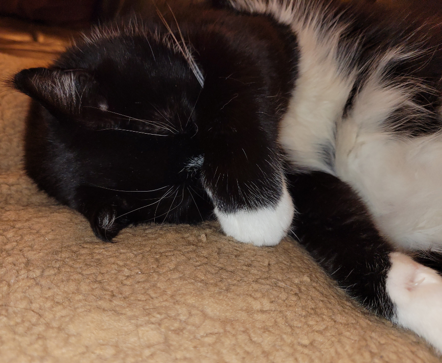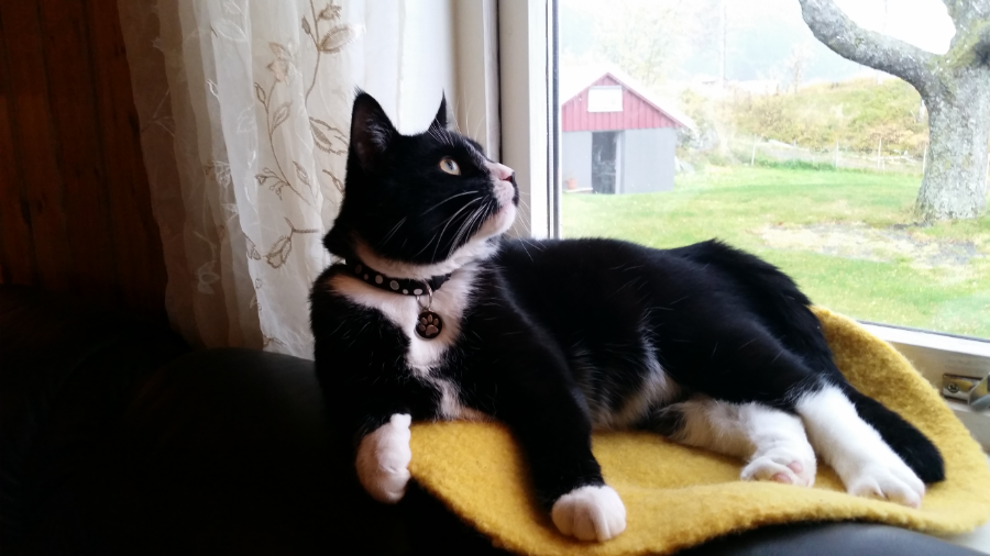 Very independent,don't like strangers. He's a big boy, but a champion mousehunter. He knows how to sit to get a treat.