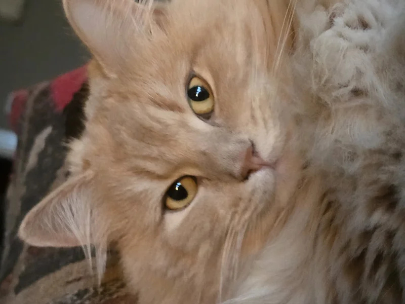 Fluffy mammadalt som elsker å leke gjemsel, romstere i skaper, få raptus på gulvtepper og skremme mamma med bakholdsangrep 😹 Ellers ganske bedagelig, bortskjemt innepus.