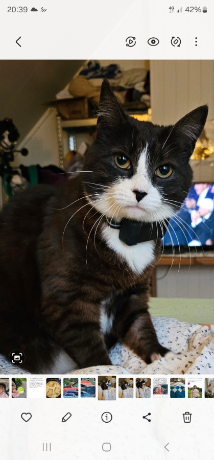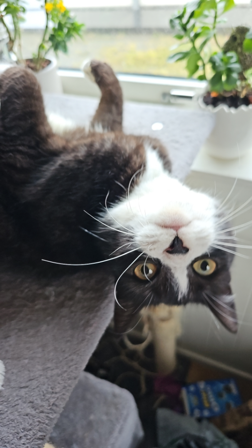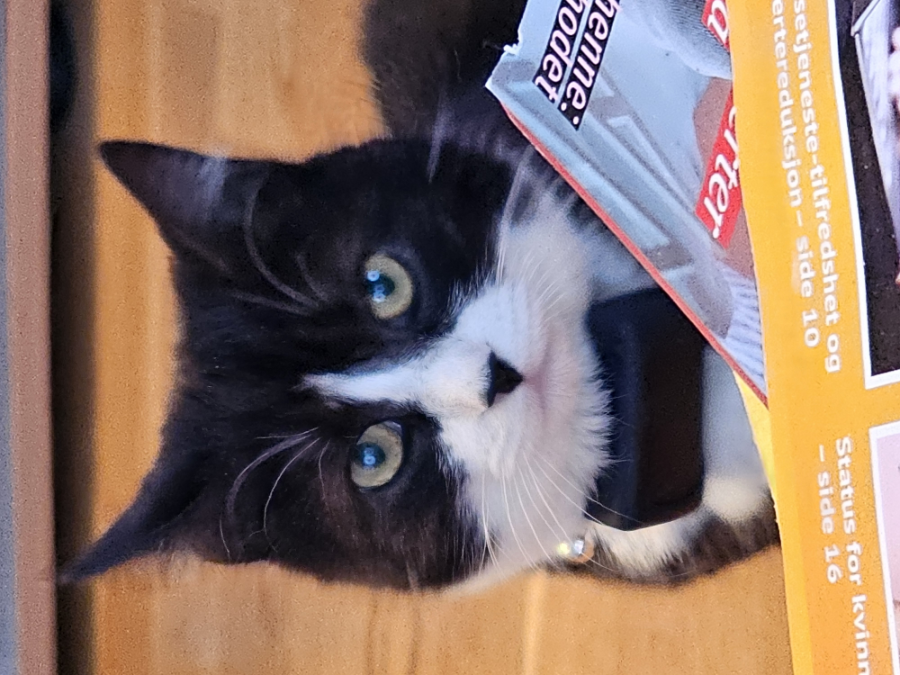 Fenja er ei pus som like seg best med husets folk,ho ble tatt inn av dyrebeskyttelsen ca 1 uke gammel,kvelden før årets første frost natt. Kom til oss i januar og er ei snill alt etende pus. Favoritt drikke e melk. Elsker vår og sommer i nord da er hun masse ute med gpsn og passer på riket sitt. Er kosen og lydig når hun vil ,men er fryktelig redd store sko, vinterklær og biler. Hun håper en dag hun skal klare å fange en kråke...små pips er ikke så interessant !!!