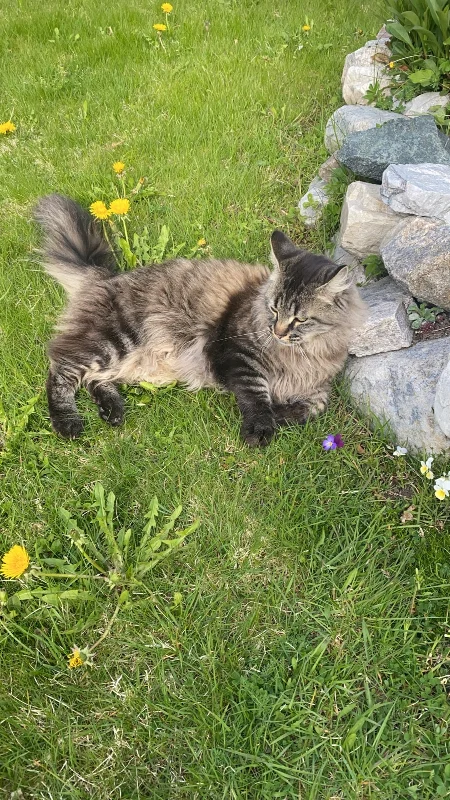 Nøtts er en veldig bortskjemt men nydelig katt som vet hva hun vil. Ingen fang katt men tar gjerne imot kos på sine premisser. Hun er dronninga her vi bor i trygge uteområder og styrer med stø labb. Da hun var 8 måneder hadde hun en ulykke og ble skadet i bekken og hofte men etter god pleie og mye omsorg er hun nå helt fin igjen. Hun er en god jeger og kommer stadig inn med gaver til sine eiere. Hun har en veldig spesiell personlighet, vil nesten si hun er blanding mellom katt og hund da hun hver kveld krever kveldstur hvor vi må være med selv om hun har luke og går ut og inn som hun vil. Hun er veldig knyttet til sine eiere. Har sitt eget rom med dobbeltseng og lever ett luksusliv som eneste barn i familien 😅