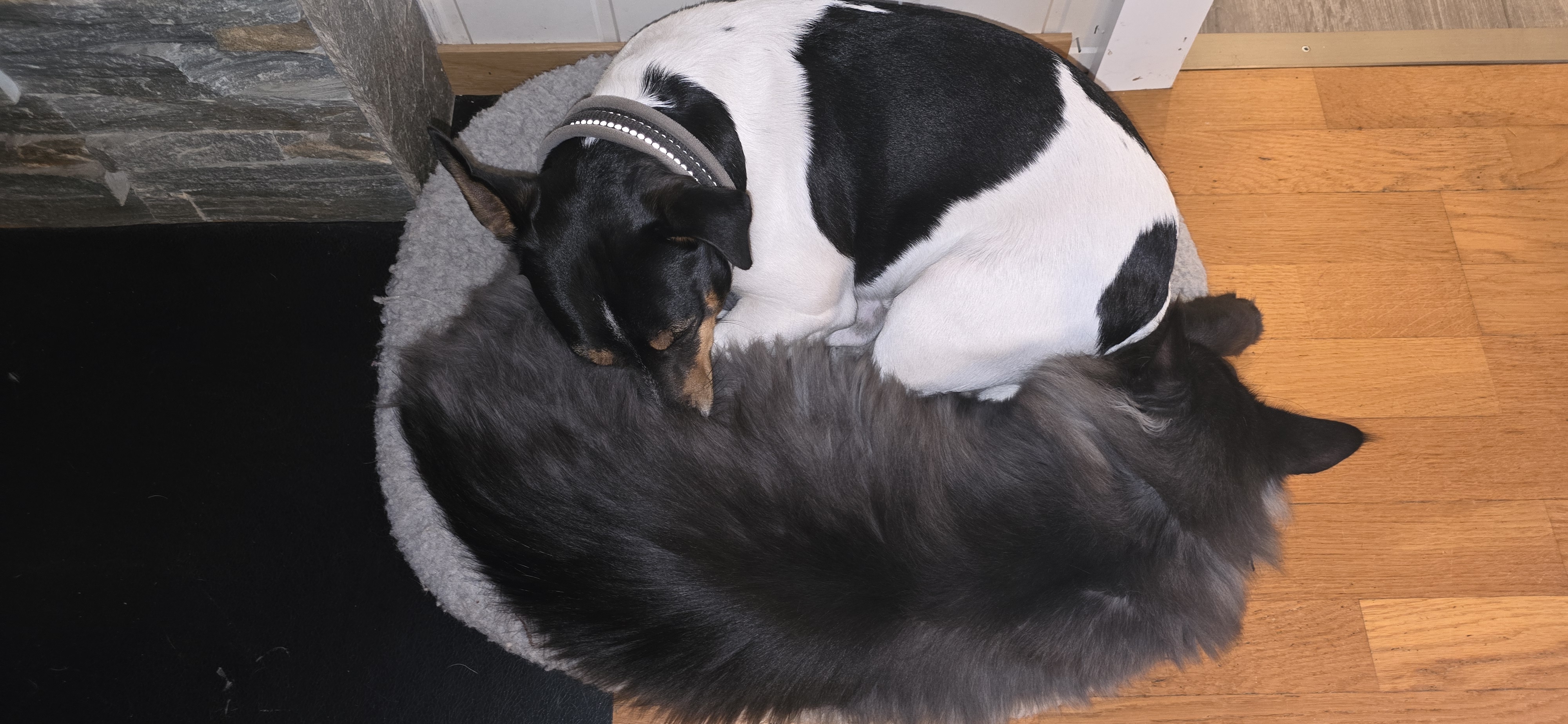 In short – while the cats leave hair in the air, on clothes, on the bed, and probably in our coffee too, the dog hair stays right where it belongs: on the dog!