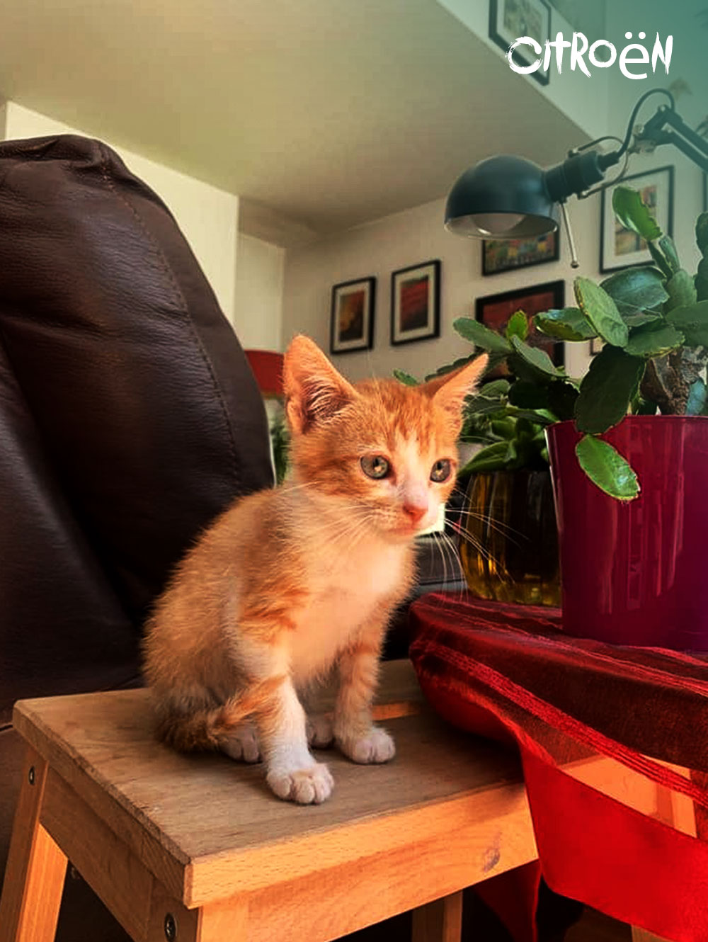 Luisa, who already had a cat and also a Citroën car, decided to keep the kitten and renamed him to the name I gave him, and she appointed me as the little one's godmother.